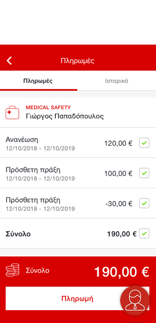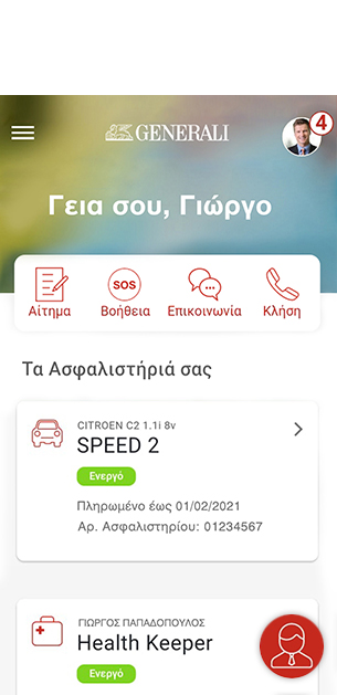 Όλες οι παροχές του Ασφαλιστηρίου είναι τώρα στο χέρι σου. Κλείσε ραντεβού με γιατρό, πραγματοποίησε την αναγγελία της νοσηλείας σου και κατάγραψε τη ζημιά του οχήματός σου online.